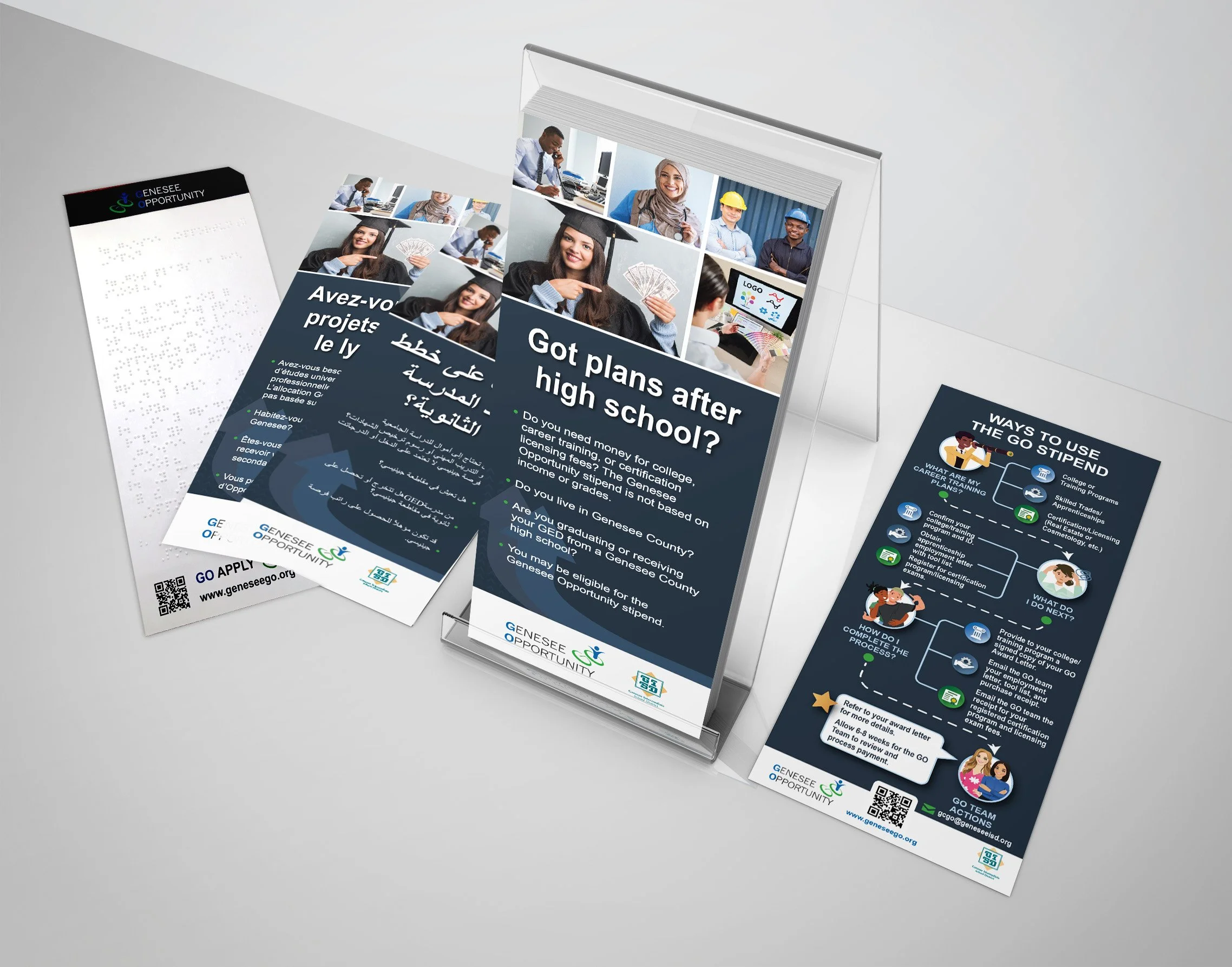 Genesee Opportunity Multi-language Rack Card and Infographic Card