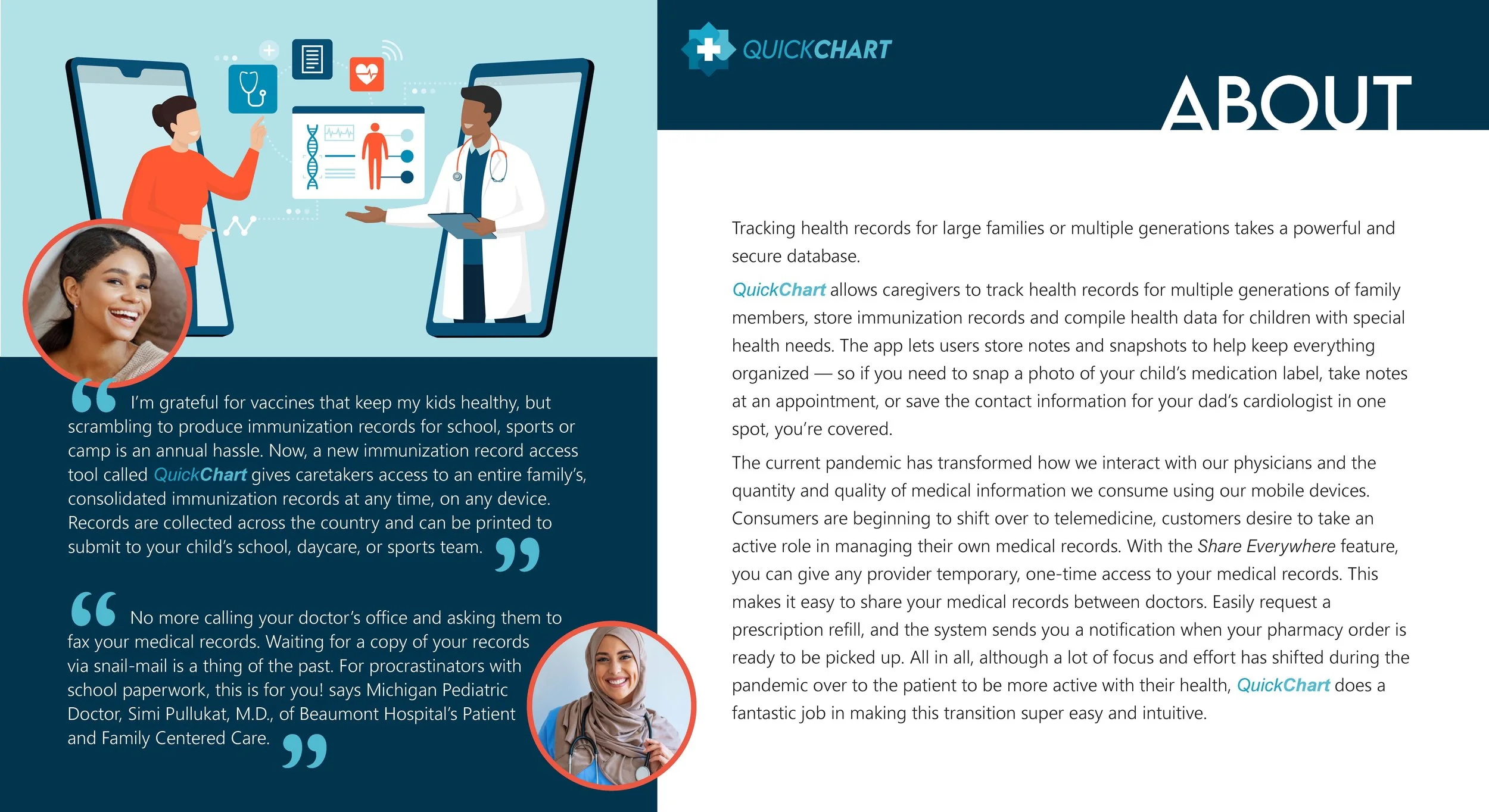 QuickChart is a secure app designed to keep all your and your loved ones medical records in one place. Manage medications, doctor’s appointments, health data, and more. Get medical alerts and notifications to primary contacts and emergency personnel.